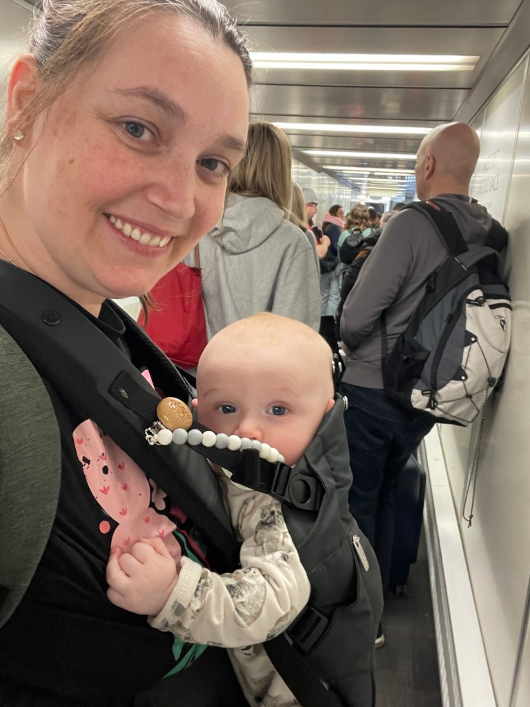 L’enregistrement et l’embarquement se sont vraiment bien passés honnêtement j’en suis encore surprise! On dirait que quand tu es une maman seule avec un bébé, tout le monde te sourit et veut t’aider!