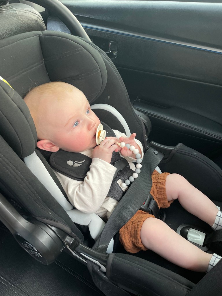 • Au niveau de la poussette, j’ai la thule à 3 roues qui se plie bien, ainsi que la coquille (banc d’auto) qui se clipe dessus avec un adaptateur de coquille pour poussette. C’est vraiment très pratique de pouvoir garder bébé dans la coquille sur la poussette jusqu’à la porte d’embarquement. Une fois la gate d’embarquement dépassée, on y laisse la poussette et la coquille et hop, on transfère le bébé dans le porte bébé pour l’embarquement.