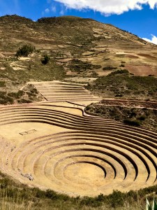 On a acheté quelques souvenirs, jasé avec quelques habitants et continué notre route vers Moray, où la route était assez étroite et sur le bord des falaises. Nous y avons vu les terrasses qui ont servi de laboratoire aux incas pour l’agriculture en montagne.