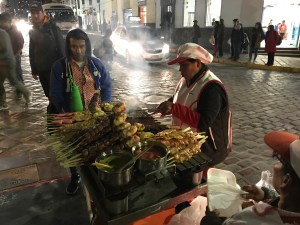 On a pas encore osé manger du Cuy (cochon d’Inde) mais on en voit partout … bien grillé et prêt à manger sur une broche. Sérieux… ARK!!