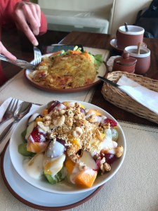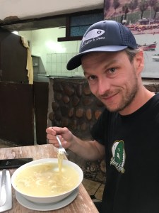 C’était ensuite l’heure du retour à l’endroit où nous avions eu un copieux déjeuner (rainbow restaurant) avec pas trop d’attentes sur ce qu’on nous servirait à dîner. Finalement, une de ses fameuses soupes péruviennes (caldo) avec du poulet et des œufs dedans en entrée puis ensuite un buffet avec des patates, du poulet, du riz, des patates encore (!) des betteraves, tequenos et légumes. C’était super bon!