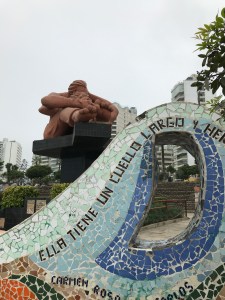 Pour terminer la journée en beauté, dave tenait absolument à aller voir la statue de Pachacutec son dieu préféré (!) un genre de musée dans une tour. On a donc encore marché , il y avait une belle vue d’en haut, on y a observé le coucher de soleil avant de remonter à pieds par Avenida del sol.