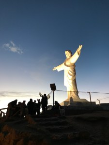 Sur le retour, Christo Blanco en haut de la colline. Le Soleil se couche à 6:00 PM ici, c’est fou comme les journées sont courtes!