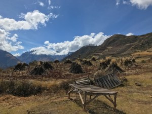 On arrête dans un petit village qui n’a même pas d’électricité, pour prendre notre ‘petit déjeuner inclus’. À notre grande surprise, quelques Thermos d’eau chaude, des feuilles de coca et quelques infusions ainsi que des petits pains, froids, secs, un peu de beurre et tellement pas assez de confiture qu’on doit en redemander avec un air presque gêné! Non mais attends, on s’est levé à 3:00 AM, il est rendu 7:00 AM et on s’en va faire 5:00 de randonnée avec un PETIT PAIN DE MERDE dans l’estomac? haha on en revenait pas! Et bien on a su plus tard la raison. En fait, on savait déjà qu’en altitude il faut faire attention de ne pas trop manger car la digestion ne se passe pas du tout de la même façon. Des gens qui mangent trop avant un trek et qui ne sont pas habitués d’être à une telle altitude (4000 à 5000 mètres) , le guide dit que c’est arrivé qu’ils ne puissent pas faire plus que 30 minutes de randonnée et qu’ils feel trop mal qu’ils doivent redescendre. Alors, on a mangé notre petit pain sans rien dire mais en se regardant avec des yeux qui veulent tout dire haha.