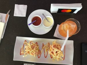 Vous serez surpris mais, à part quelques blasphemes, on était pas trop fâchés ni impatients…!!! On décide donc de REDESCENDRE ces milliards d’escaliers pour se rendre à un petit resto (car oui, on a atterrit à 5:30 pm et il était maintenant rendu 8:00 pm à force de chercher)! À ce resto, il y aurait du wifi et on pourrait au moins le contacter avec internet ce cher Luis injoignable. Ouf, toute qu’une péripétie, mais tout ça s’est réglé autour d’un bon ceviche de poisson de Riviere qui vit a cusco et d’un plat de pâtes pour Dave avec des tequenos et une des meilleures guacamole que j’ai jamais mangée!